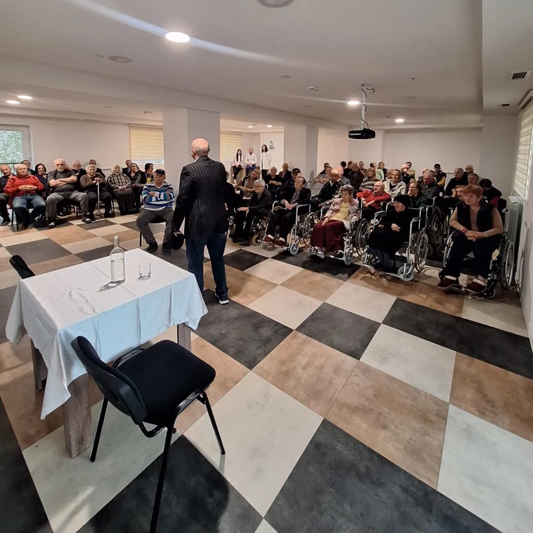 Svi prisutni uživali su u izvođenju "Bizmismena"; sala Doma orila se glasnim smijehom naših korisnika na čemu smo g-dinu Krivokapiću posebno zahvalni.
