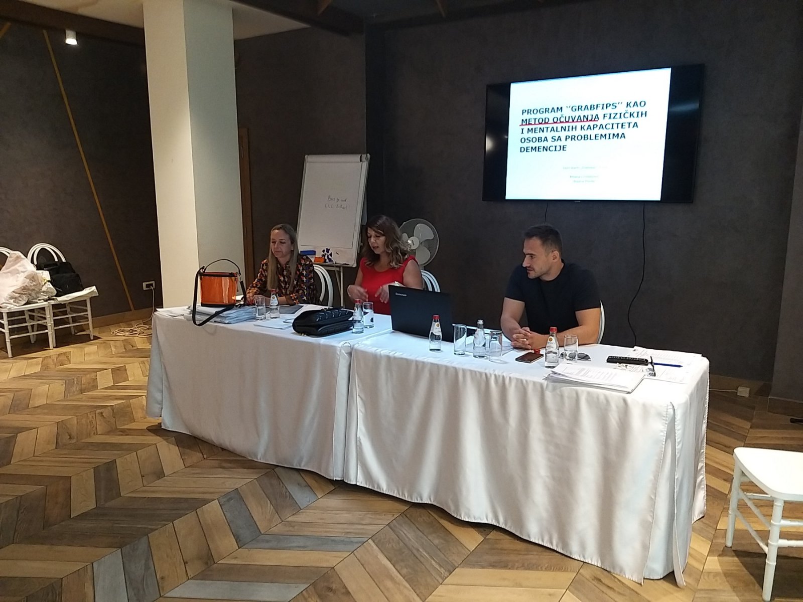 Psihološkinje Bojana Plavša i Biljana Cimbaljević govorile su o programu "GRABFIPS" kao metodu očuvanja fizičkih i mentalnih kapaciteta osoba sa problemima demencije, dok se fizioterapeut Emil Luković bazirao na biopsihoscijalnom pristupu. Obuka je uspješno realizovana kroz interaktivna predavanja, odgledane kratke filmove, vježbe i diskusije.