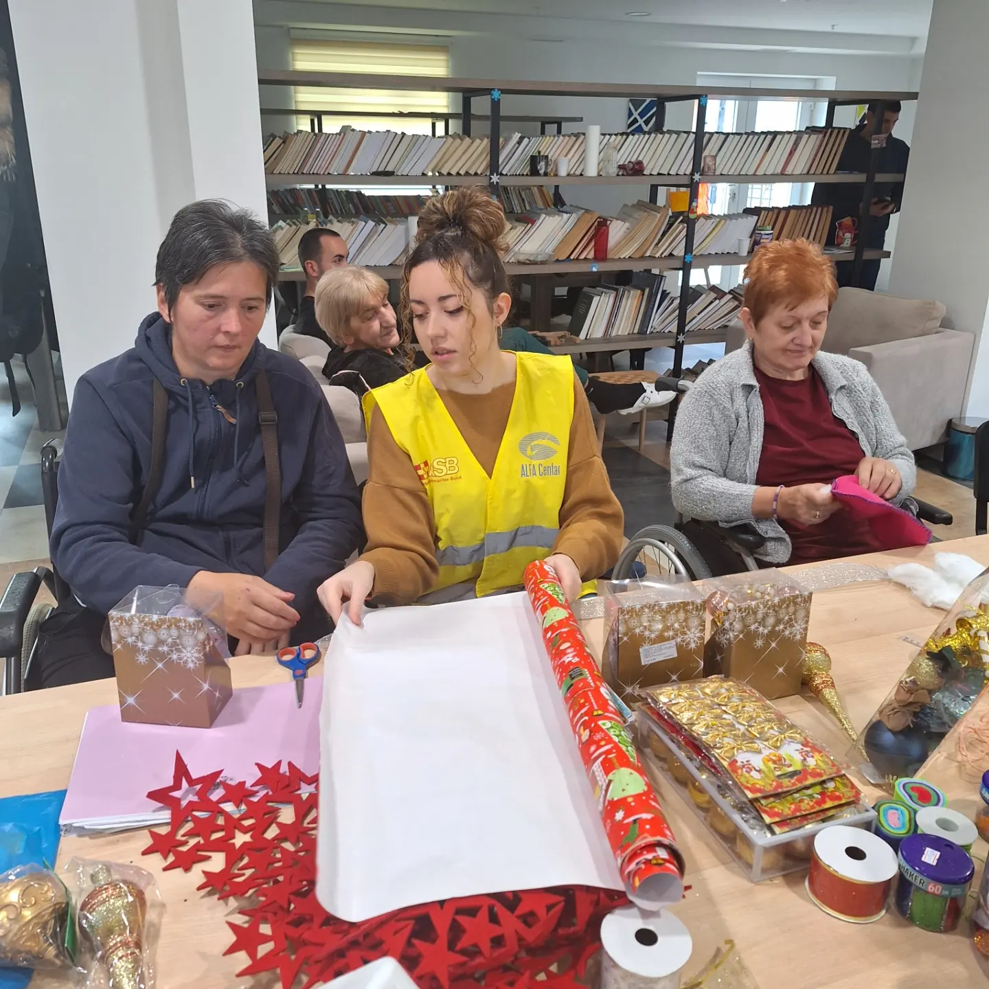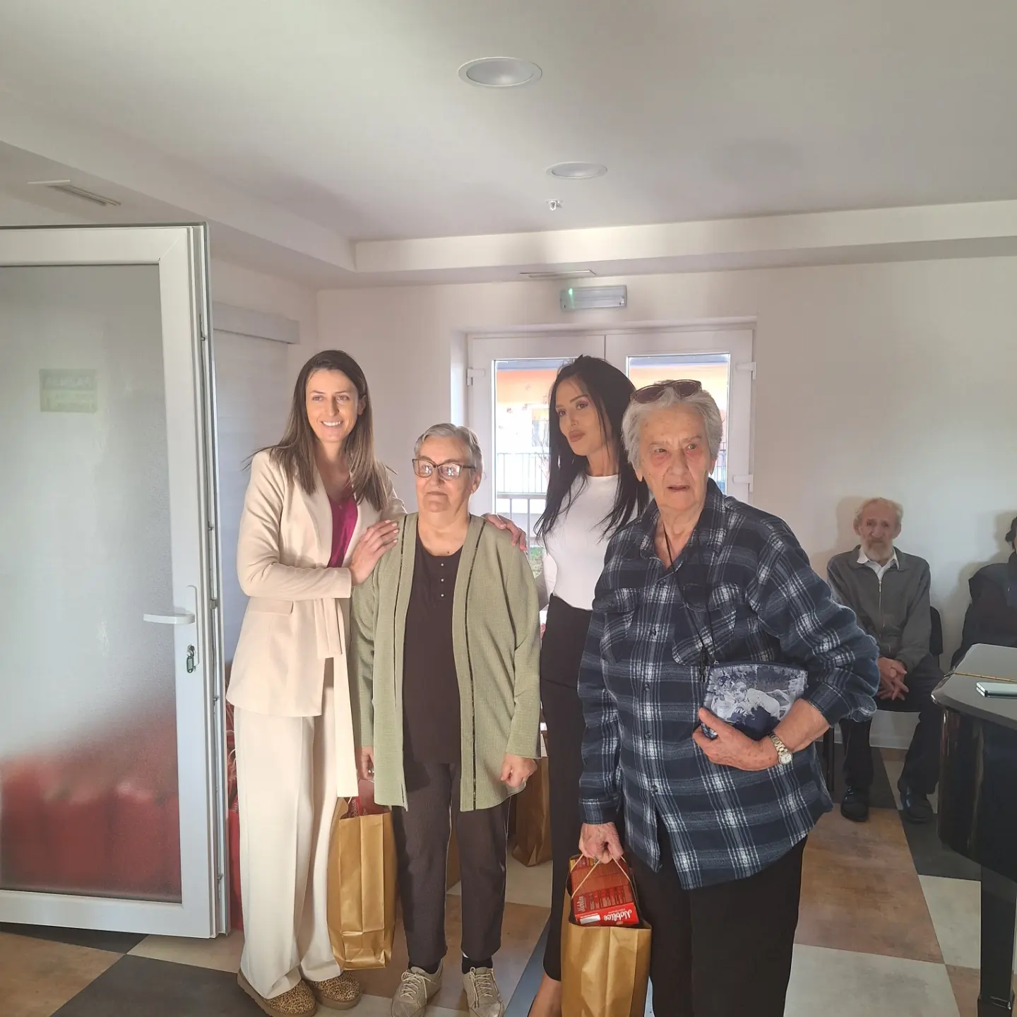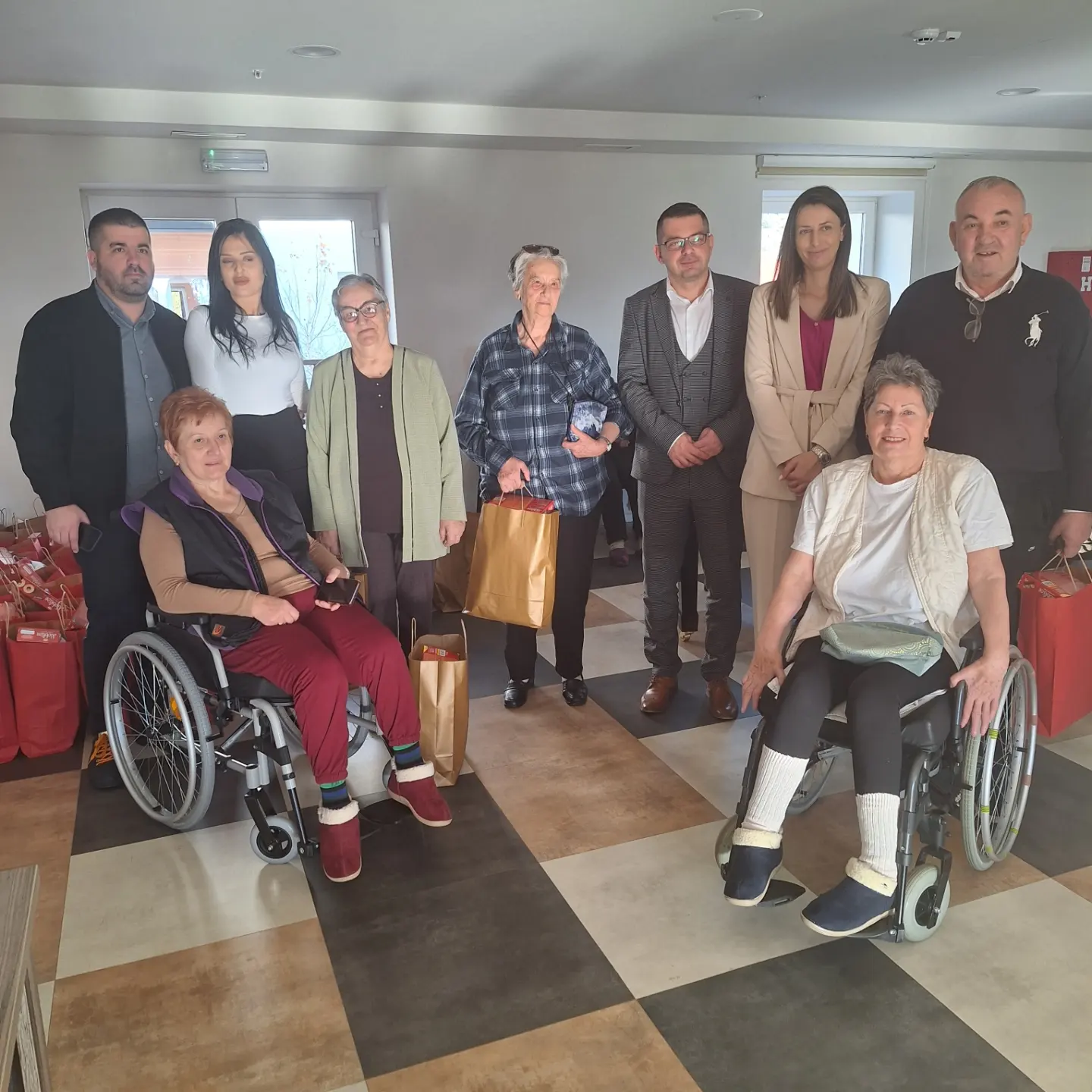 Predstavnici Ministarstva rada i socijalnog staranja Adis Pepić, sekretar Ministarstva, Albina Osmanović, samostalna savjetnica u Birou za odnose sa javnošću i Vladan Kankaraš, samostalni savjetnik u Direkciji za informatiku, posjetili su danas našu ustanovu i tom prilikom uručili novogodišnje poklone našim korisnicima.