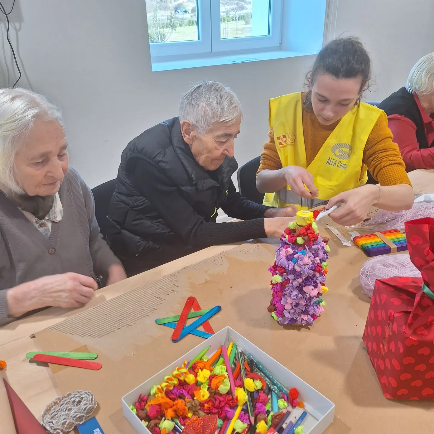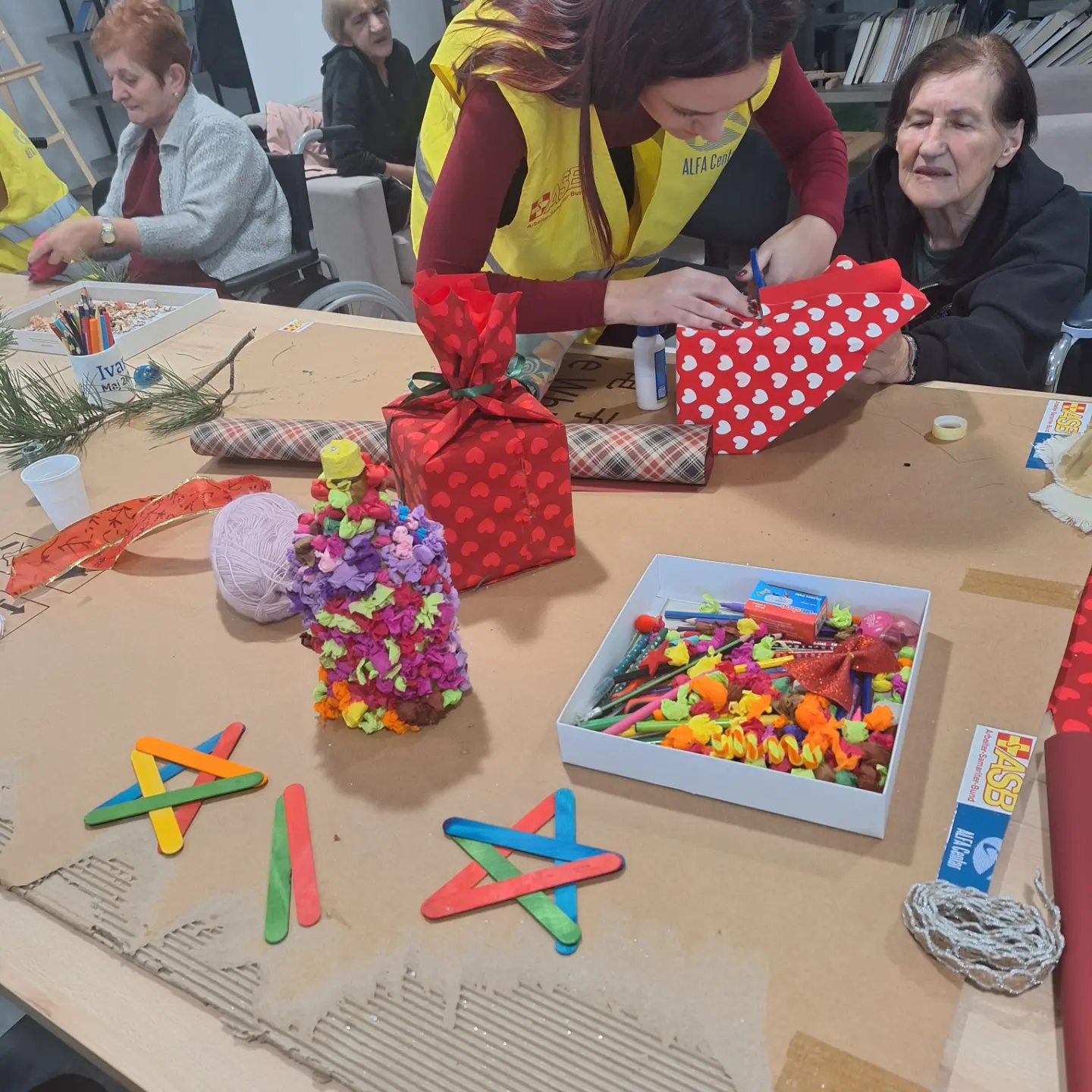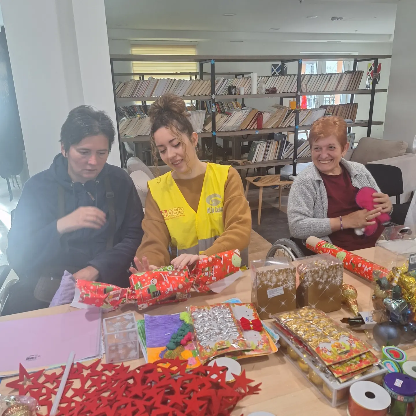 Predstavnici Ministarstva rada i socijalnog staranja Adis Pepić, sekretar Ministarstva, Albina Osmanović, samostalna savjetnica u Birou za odnose sa javnošću i Vladan Kankaraš, samostalni savjetnik u Direkciji za informatiku, posjetili su danas našu ustanovu i tom prilikom uručili novogodišnje poklone našim korisnicima.